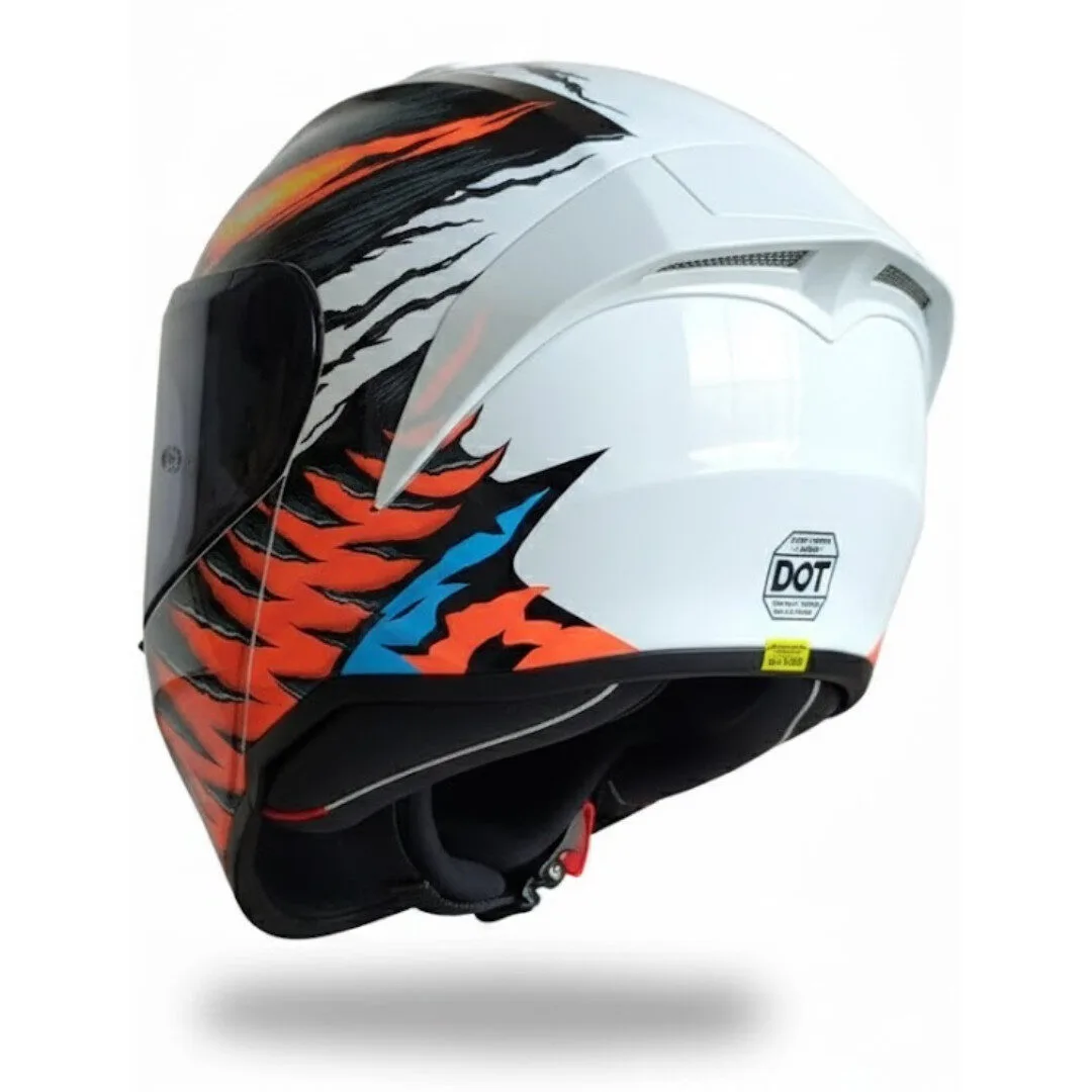 ¡Haz que todas las miradas se posen en ti con el Casco Abatible IBK en Blanco y Naranja Fuego! Este modelo combina un diseño artístico de alto impacto, inspirado en flamas y garras, con la funcionalidad técnica de un casco modular de última generación. Su base blanca brillante hace que los detalles en naranja neón resalten, proporcionando no solo un estilo único, sino también una mayor visibilidad en la carretera.
